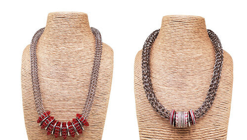 At a young age Jere Moskovitz, learned from her mother and grandmother how to knit and crochet. After earning a BFA in Apparel Design from the Rhode Island School of Design, she began a 20-year career in the apparel industry. Moskovitz’ education and travels inspired her decision to create textile-inspired jewelry by applying knitting and crochet techniques to copper wire.