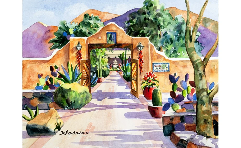 In the 1930’s, John and Helen Murphey built Hacienda Del Sol as a private girls’ school located in the Catalina Foothills of Tucson. In 1944 it was turned into an exclusive guest ranch. People travel near and far to visit this extraordinary inn. Hacienda del Sol’s charm and well-manicured grounds provide a wealth of painting opportunities.