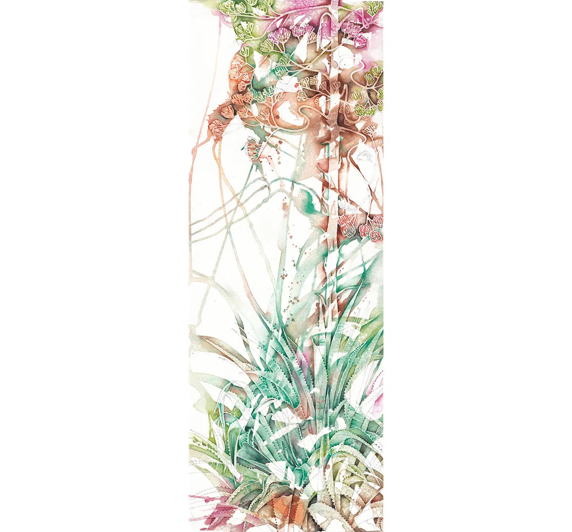 Limited palette watercolor over an abstract pouring on Fabriano Artistico watercolor paper.
