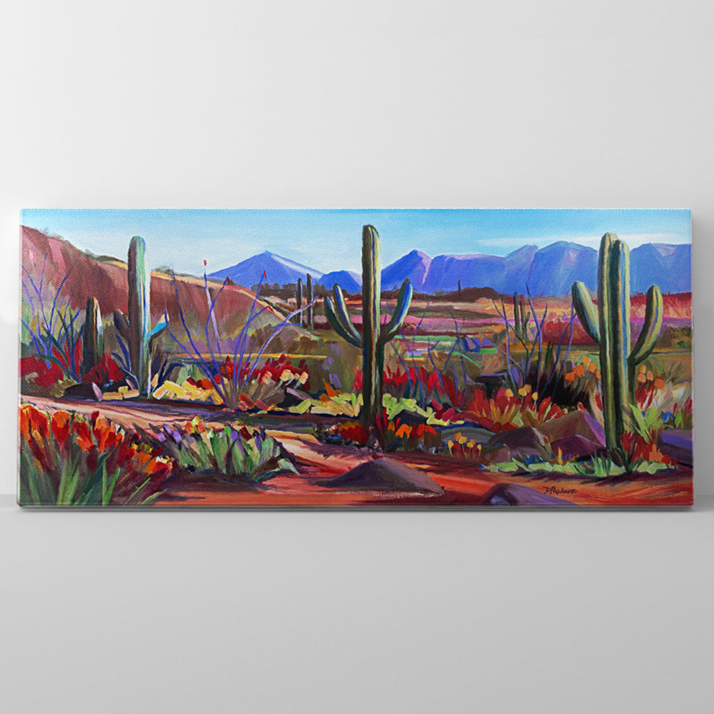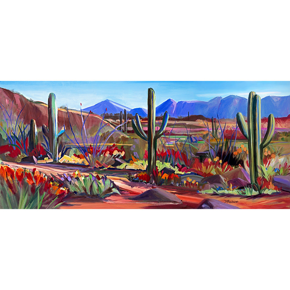 Along the Red Mile An interior designer commissioned this desert triptych for the Embassy Suites when it was built across the street from Madaras Gallery/Skyline.  The designer had only one request- use lots of red. This wonderful desert scene is located in the Tucson Mountains near the Arizona-Sonoran Desert Museum.
