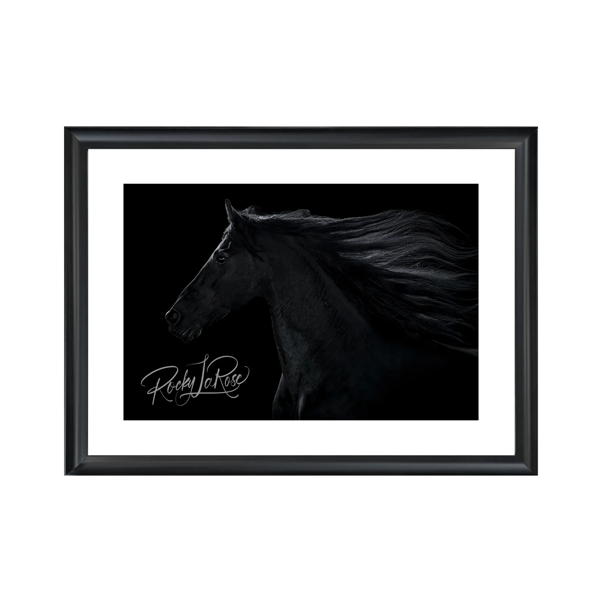 "La Roche (Stillness)" A black stallion reflects the power of night.