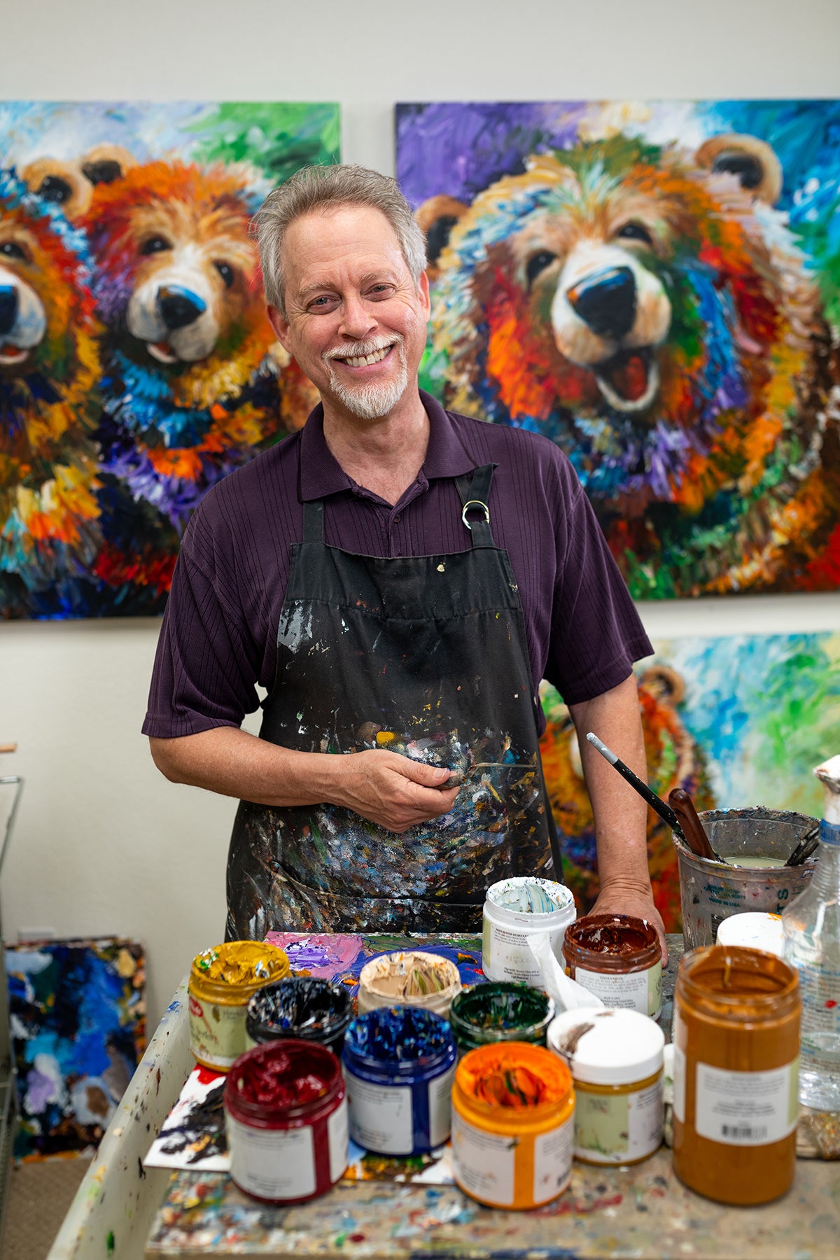 Bruce Marion is a contemporary Impressionist known for his landscapes, cityscapes, figurative works, and wildlife. His use of rich color and dramatic lighting creates paintings with a distinctive, glowing quality, as if illuminated from within. Marion achieves this effect through multiple layers of paint, applied with palette knives, brushes, and unconventional tools like drywall scrapers and squirt bottles, resulting in surfaces with tremendous depth.