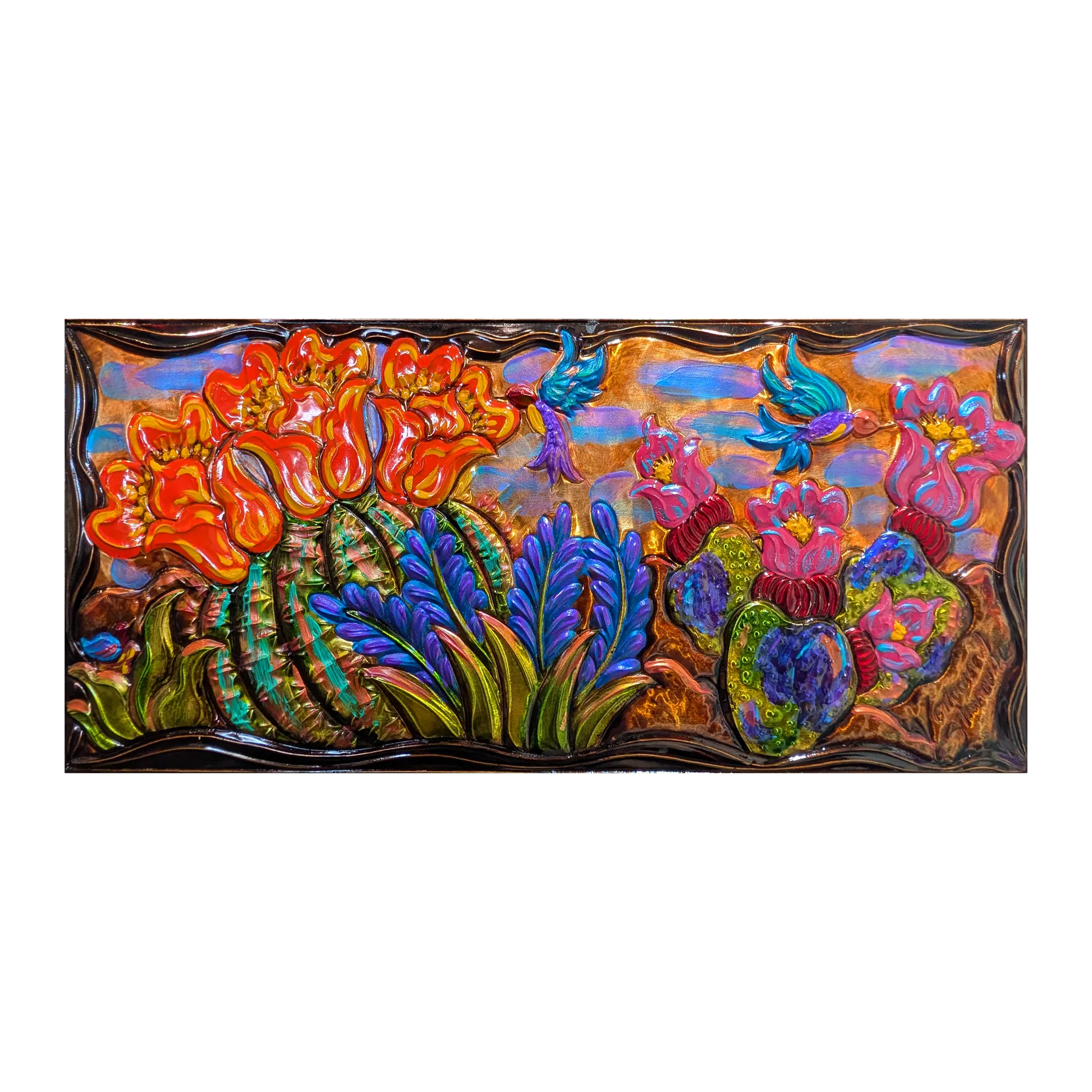 Acrylic on Hand Embossed Metal